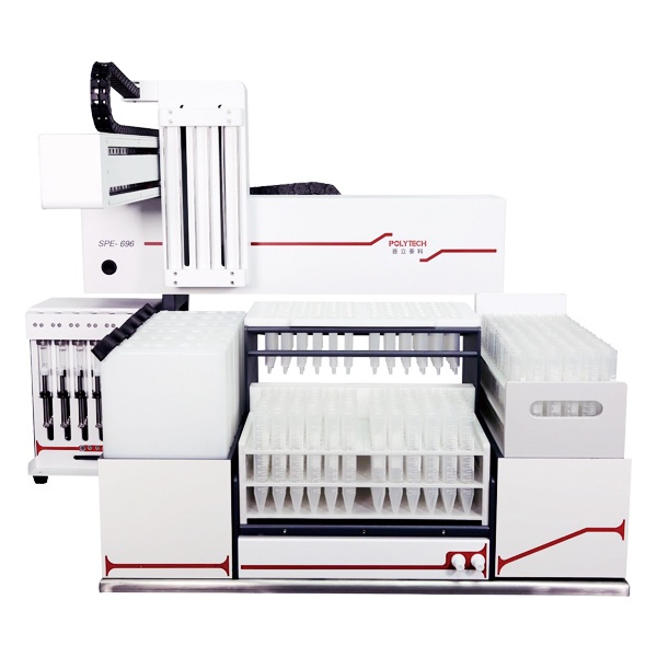 全自动固相萃取仪SPE696,根据高通量实验室的要求进行设计,具有体积小巧,通用性好等特点。广泛用于农药残留、兽药残留及其他化学残留物的萃取。可以保护GC/MS、GC和HPLC等贵重仪器中色谱柱和检测器免受污染,使设备长时间保持较高灵敏度,加速样品处理速度,从而提高灵敏度,降低*低检测限。
